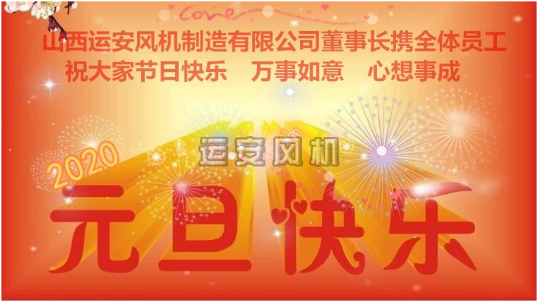 当新年洪亮的钟声响彻夜空的时候,我们迎来了一个充满希望的 2020,辞旧迎新,举国欢庆!值此良辰佳节,我谨代表山西运安风机制造有限公司董事会,向为公司创新发展付出辛勤努力的全体员工,向长期以来给予我们巨大支持、信任的新老客户和合作伙伴,向始终关怀、支持运安事业的各级 和各界朋友,致以 诚挚的节日问候和衷心的感谢!祝愿大家在崭新的2020年里,工作顺利,生活美满,阖家幸福,事事如意!