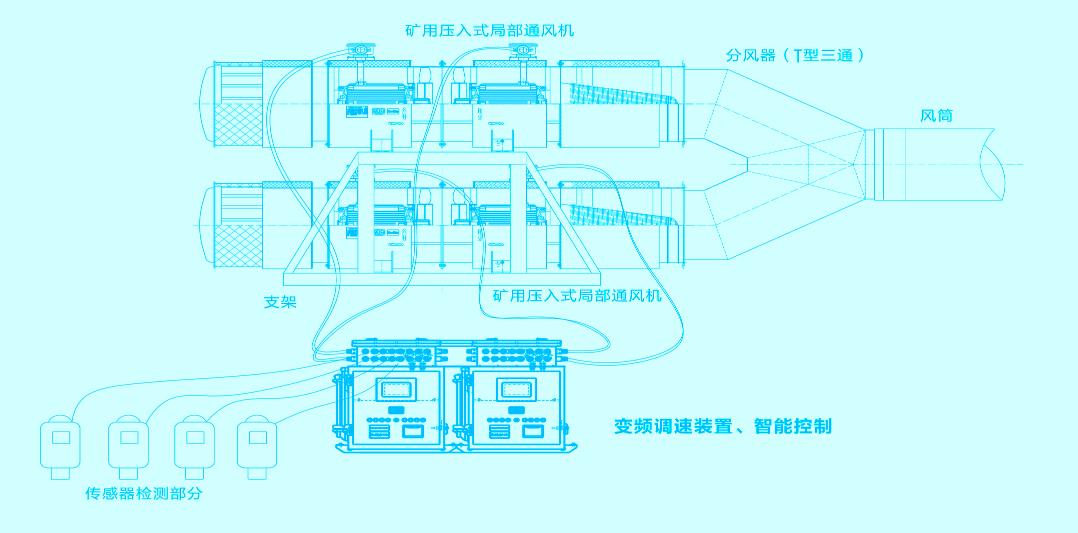 该系统有上位机、局部通风机、变频调速装置、智能控制、分风器等组成。