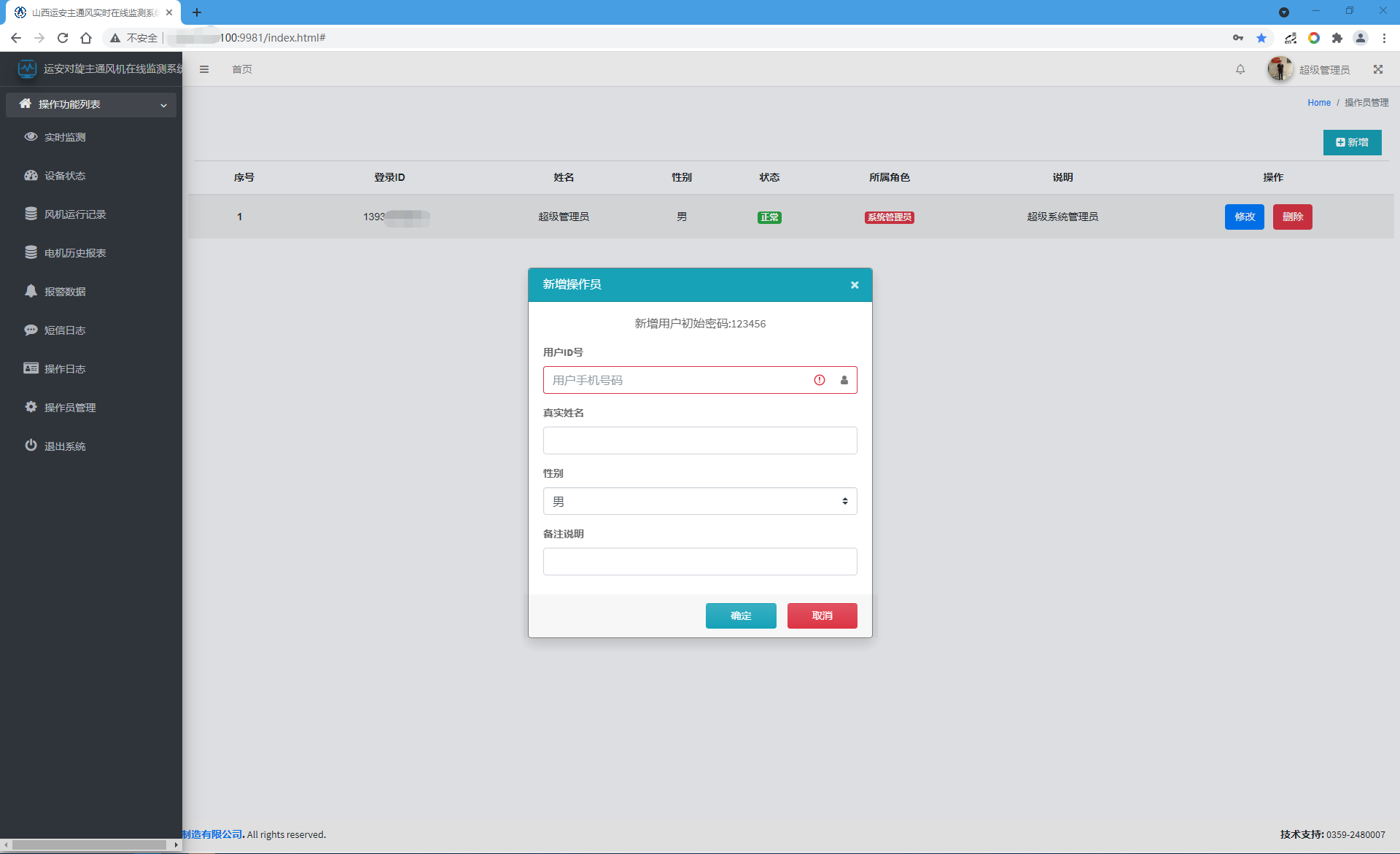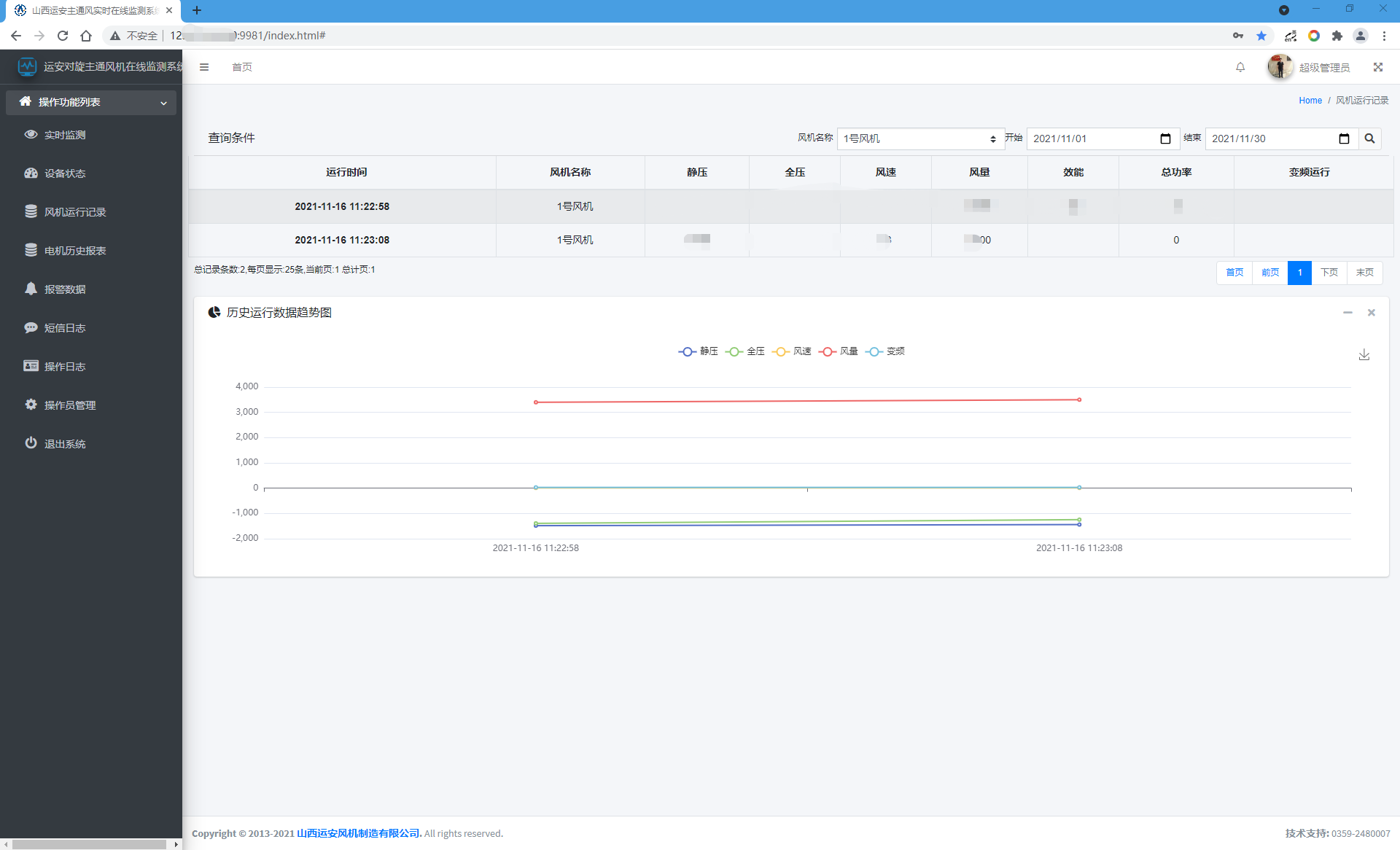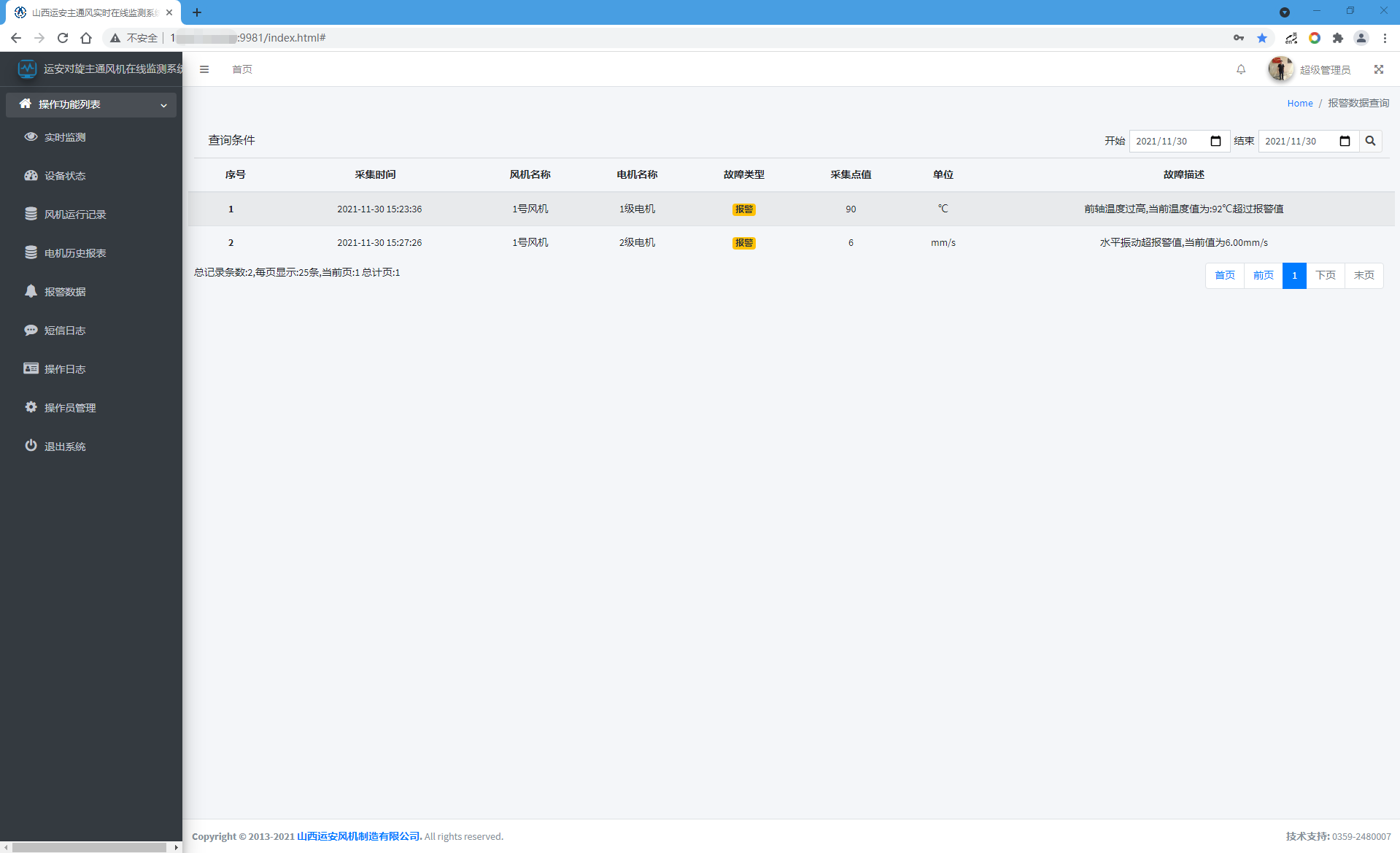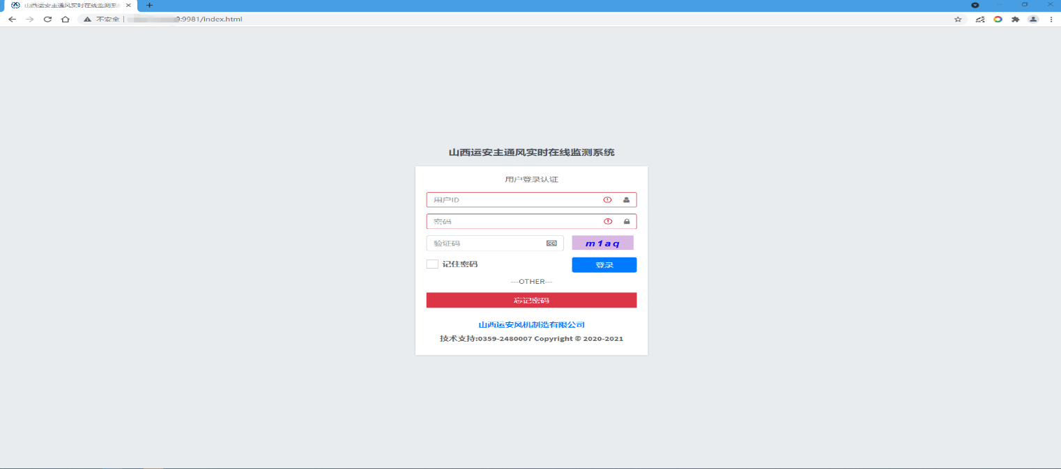 客户可通过任意电脑上的浏览器实现对主通风机的运行状况进行实时监测,本客户端只负责实时监测,无法完成对风机运行控制的操作。如果用户已经注册了APP移动端帐号,可以直接使用APP注册行统一登录。
